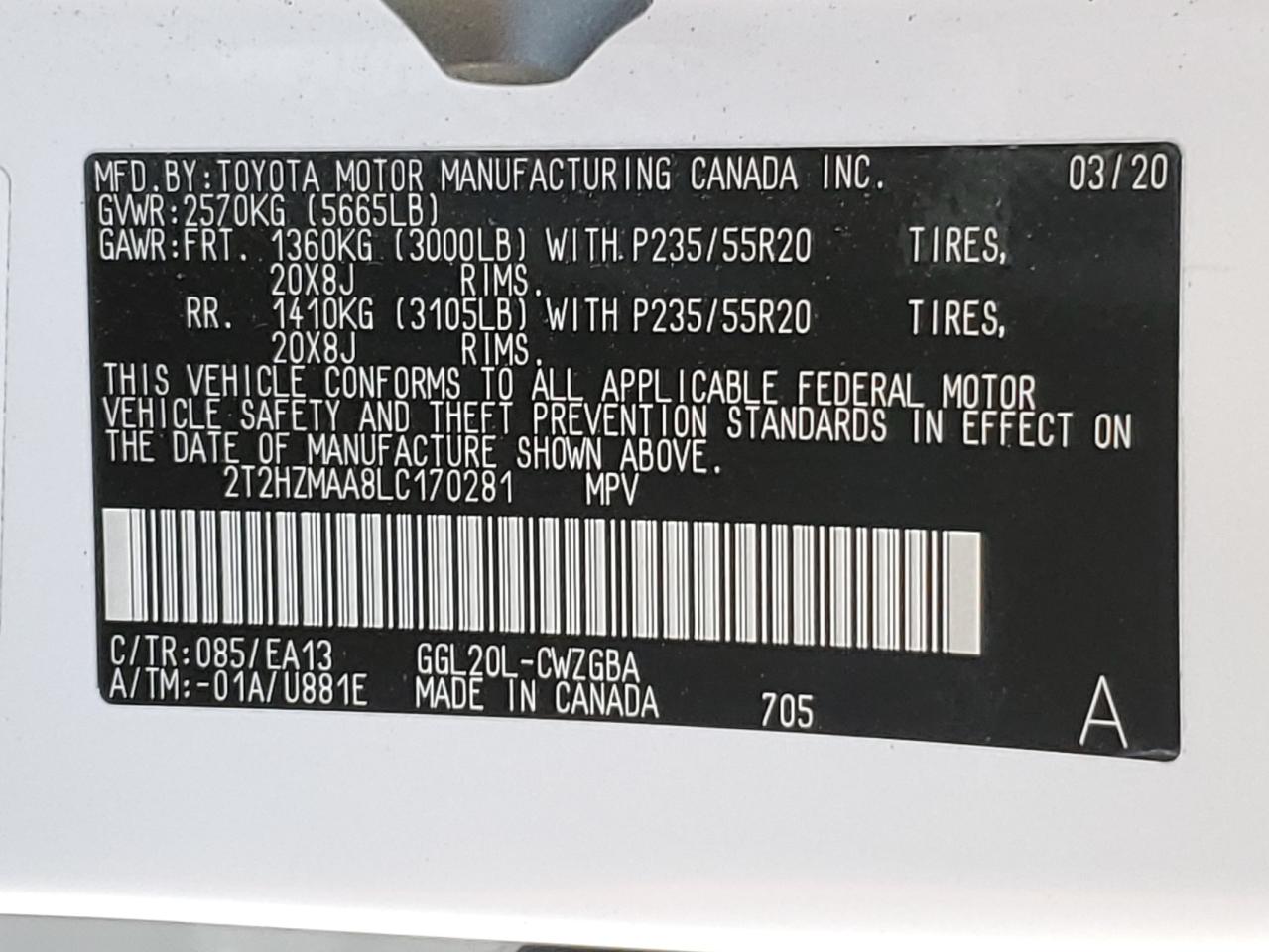 - ВИН: 2T2HZMAA8LC******