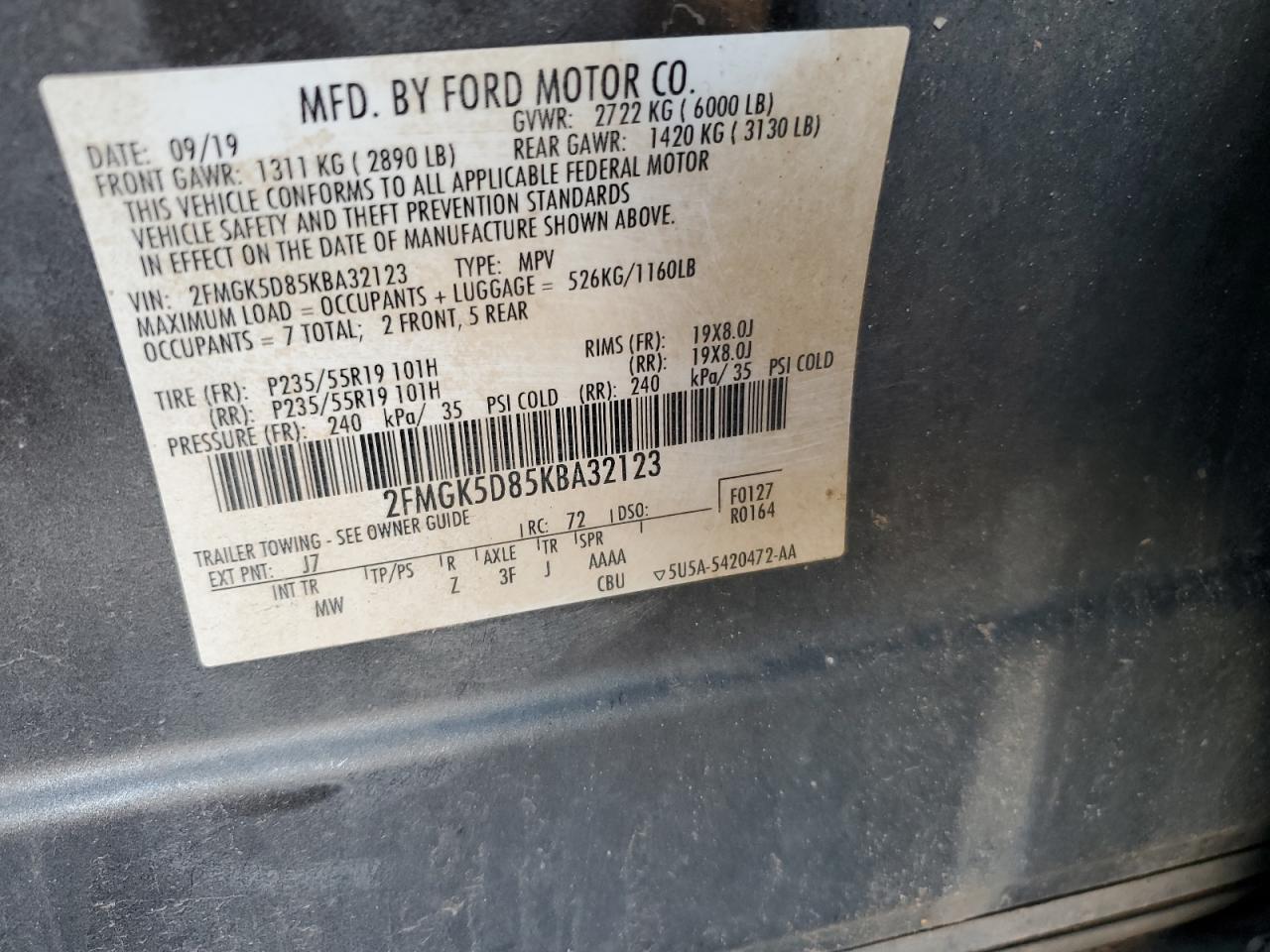- ВИН: 2FMGK5D85KB******