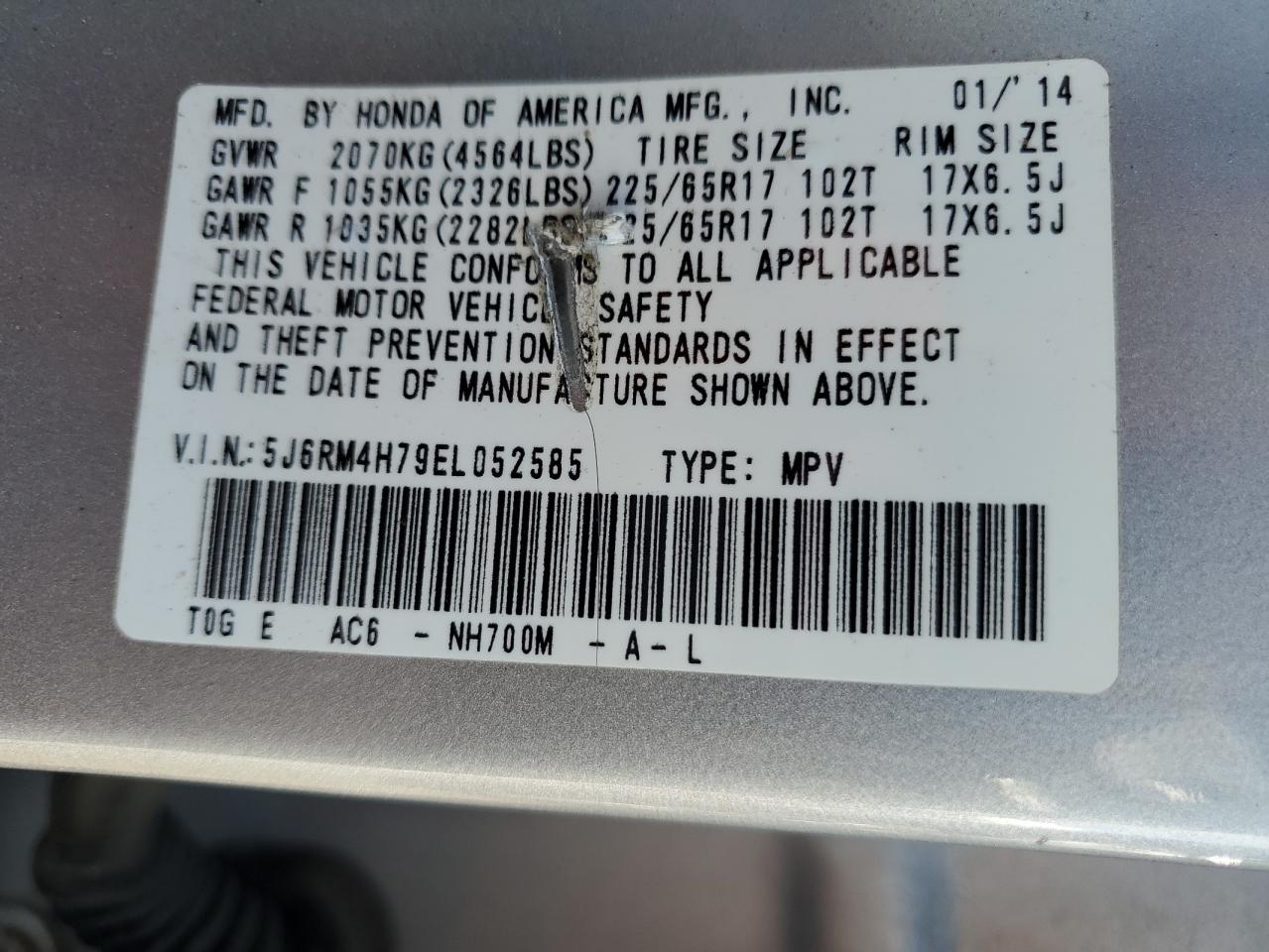 - ВИН: 5J6RM4H79EL******
