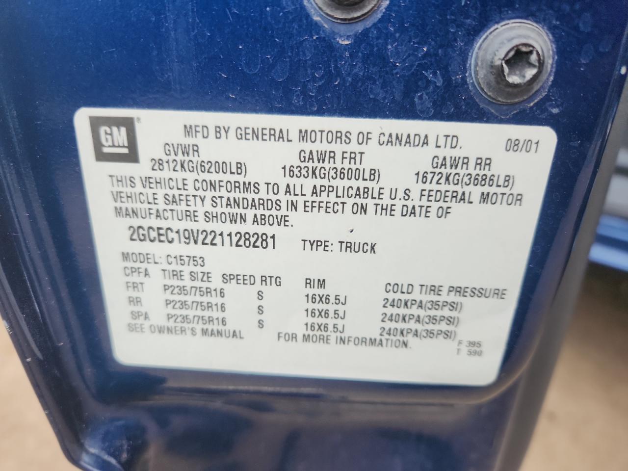 - ВИН: 2GCEC19V221******