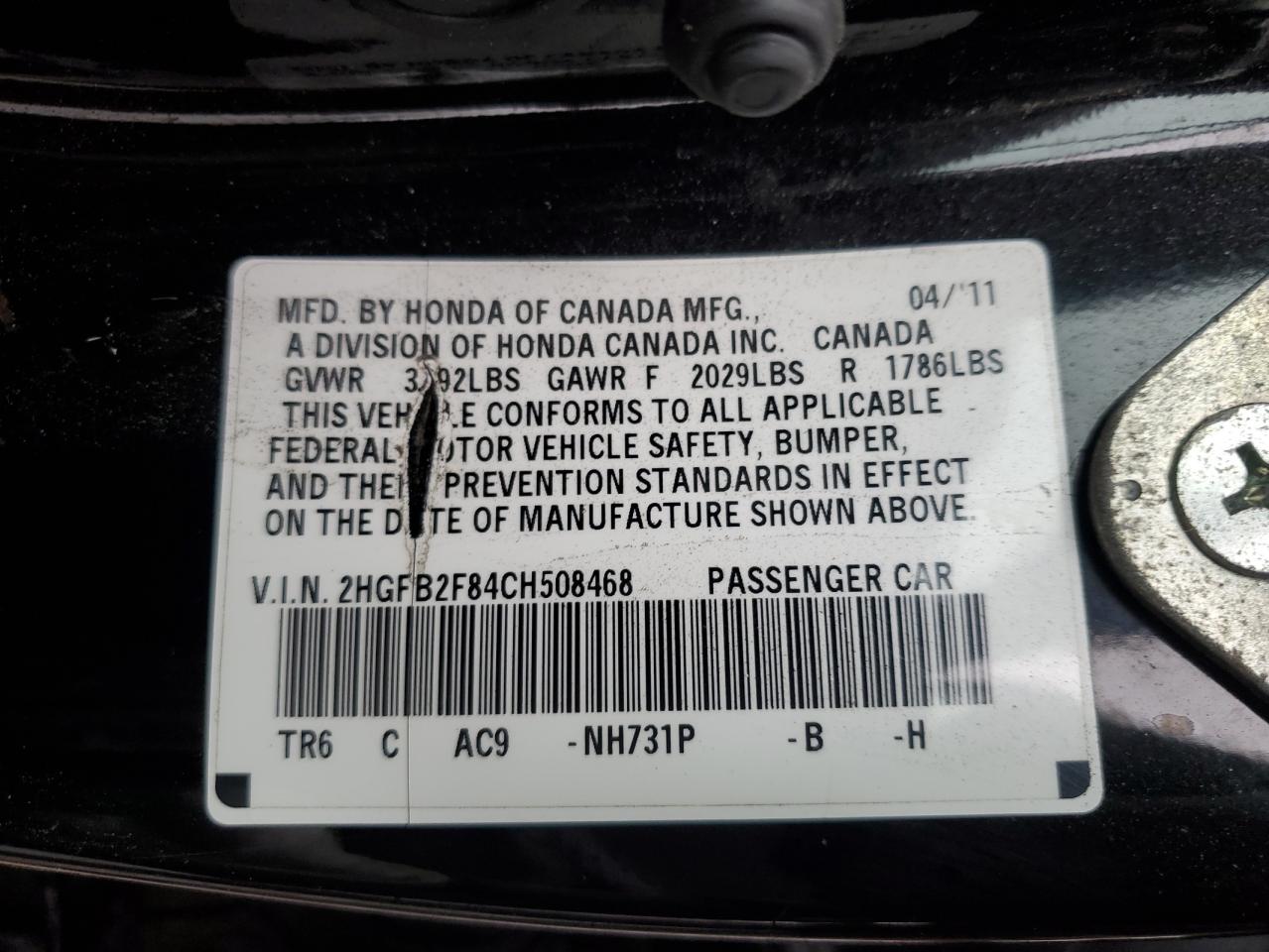 - ВИН: 2HGFB2F84CH******