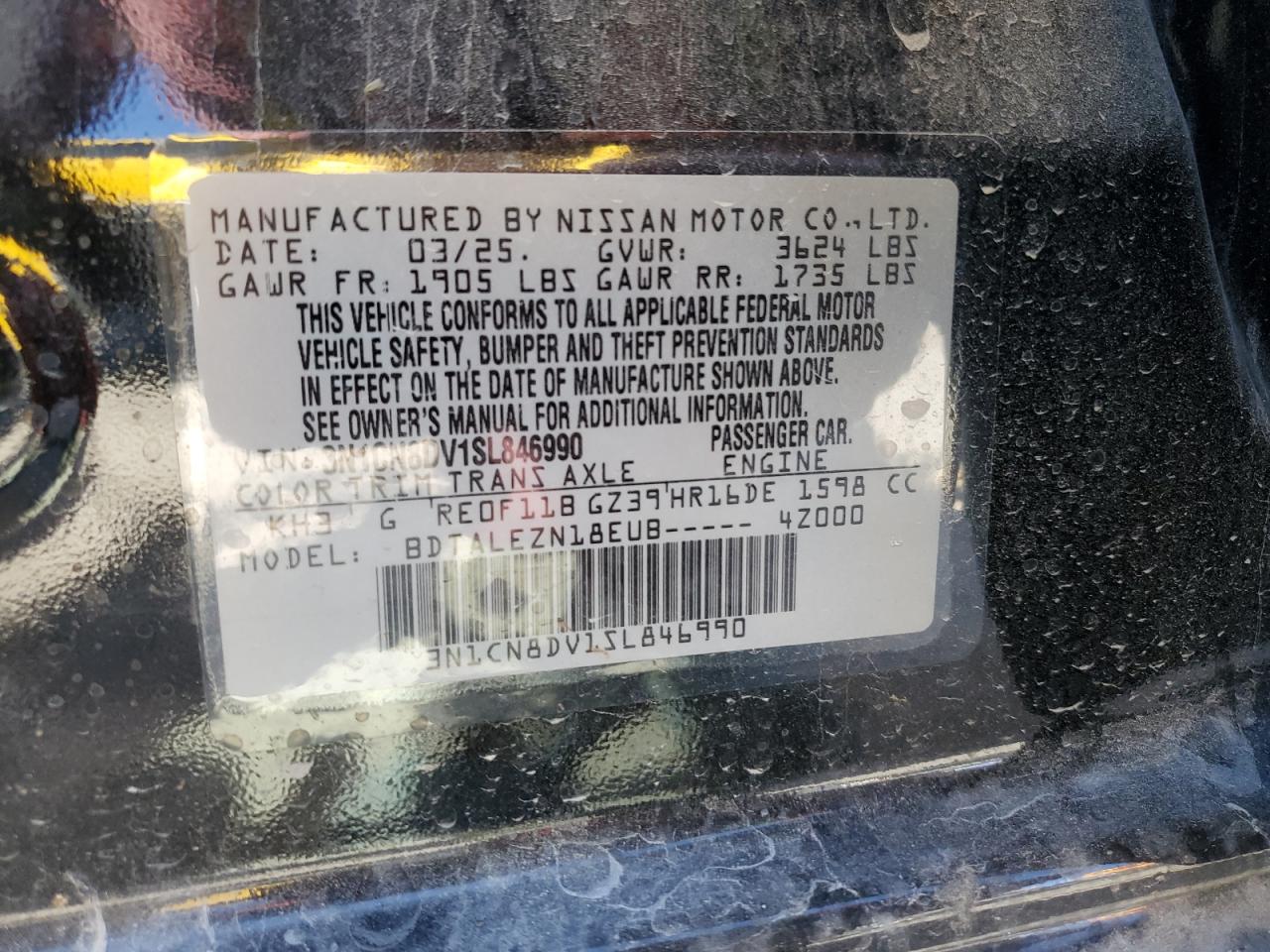 - ВИН: 3N1CN8DV1SL******