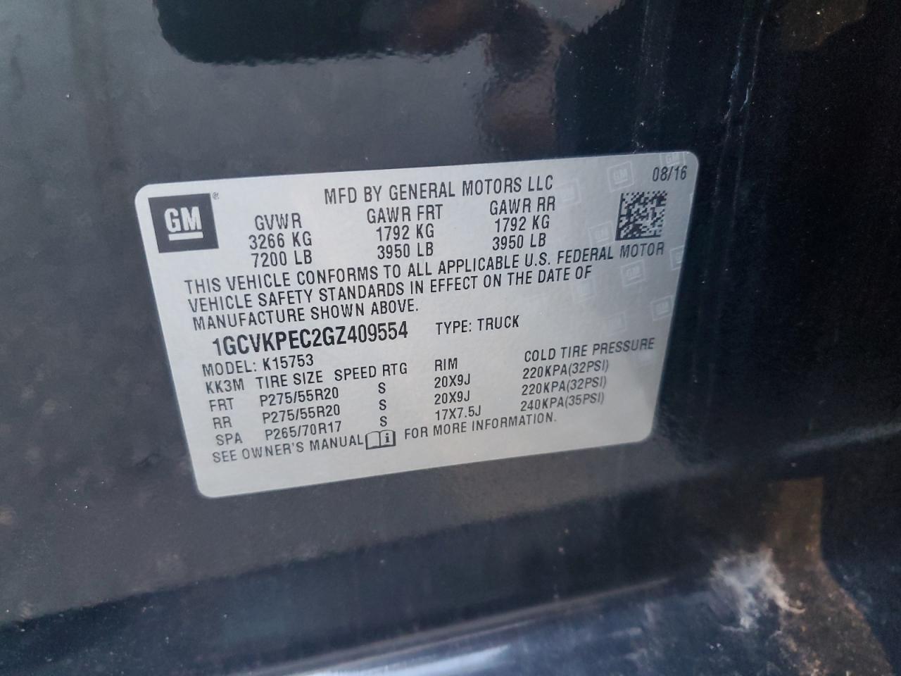 - ВИН: 1GCVKPEC2GZ******