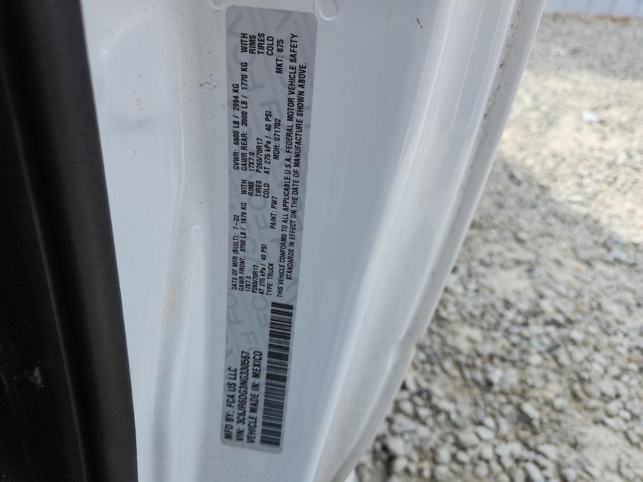 - ВИН: 3C6JR6DG3NG******