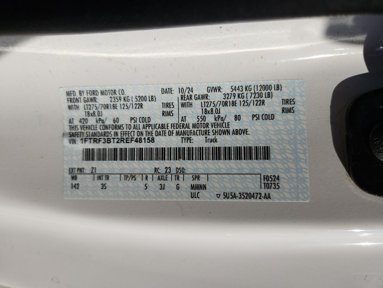 - ВИН: 1FTRF3BT2RE******