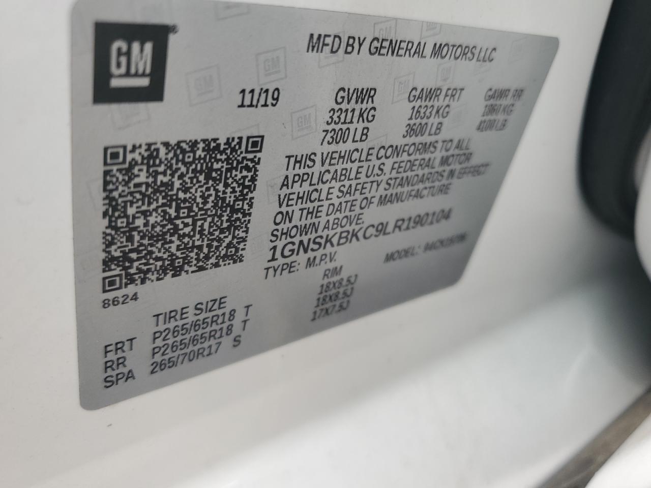 - ВИН: 1GNSKBKC9LR******