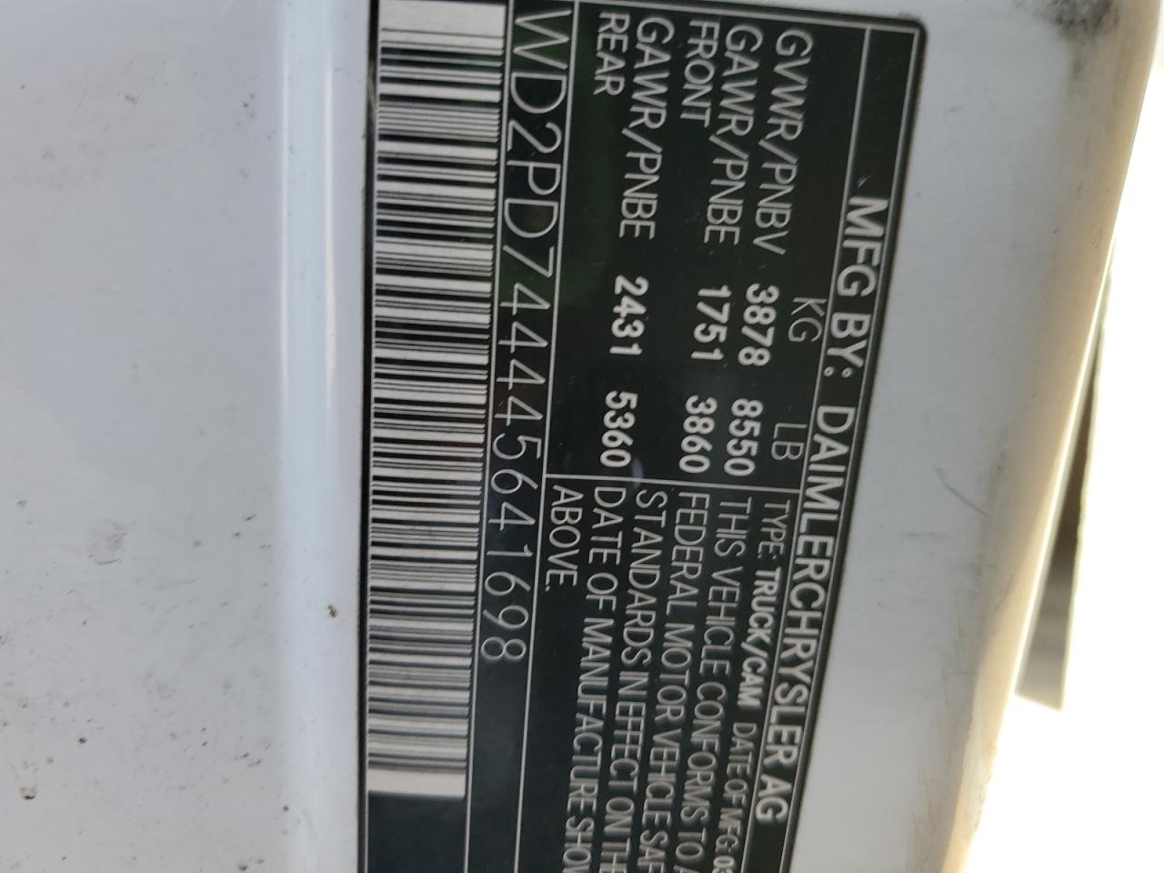 - ВИН: WD2PD744445******