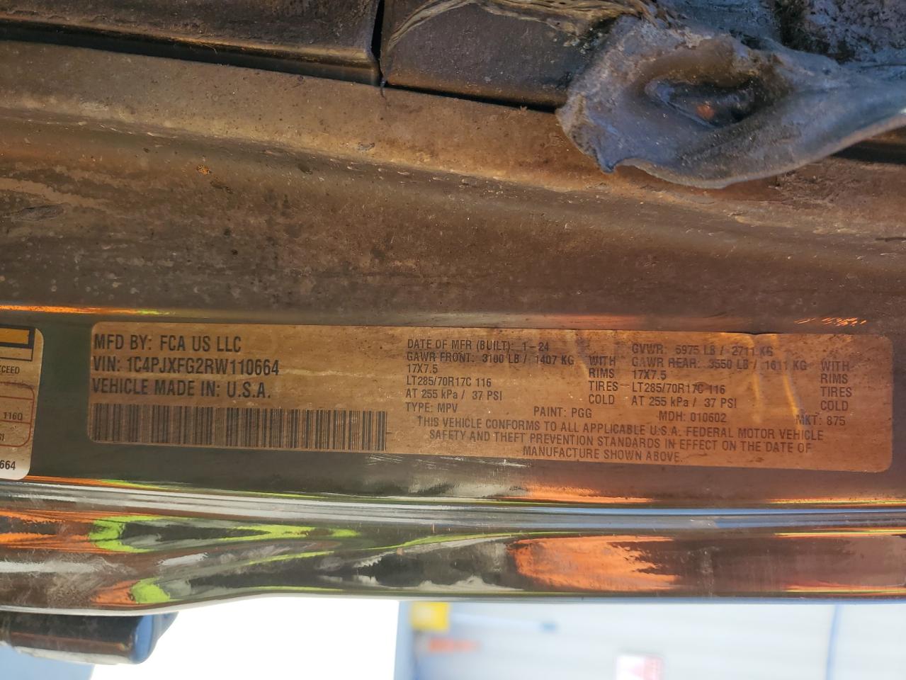 - ВИН: 1C4PJXFG2RW******