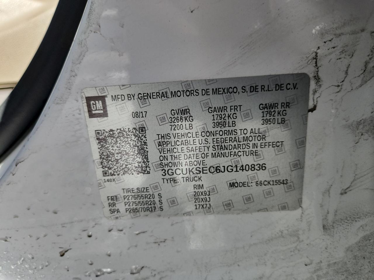 - ВИН: 3GCUKSEC6JG******