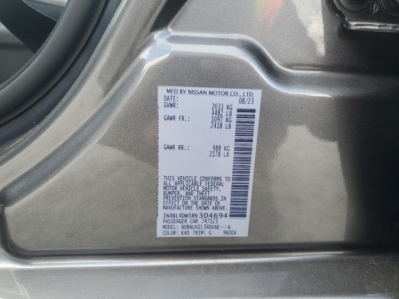 - ВИН: 1N4BL4DW5RN******