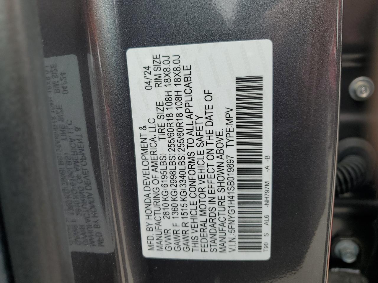 - ВИН: 5FNYG1H41SB******