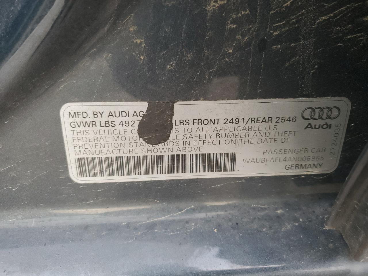 - ВИН: WAUBFAFL4AN******