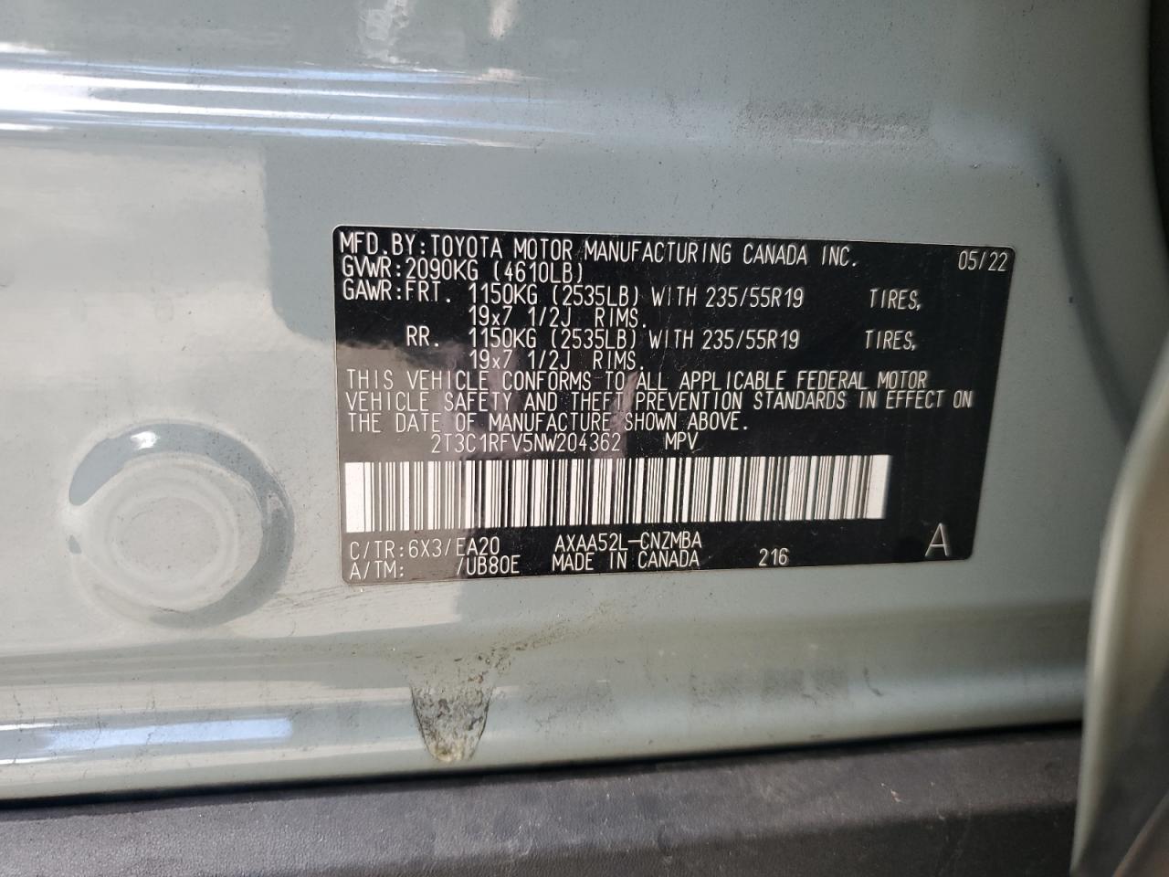- ВИН: 2T3C1RFV5NW******