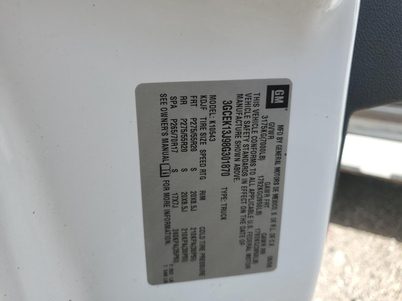 - ВИН: 3GCEK13J98G******