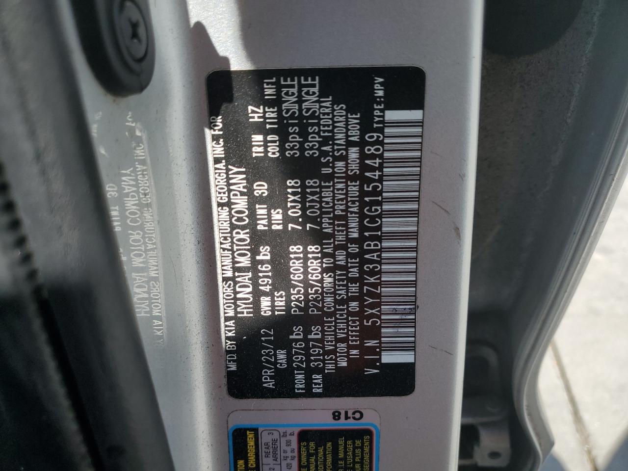 - ВИН: 5XYZK3AB1CG******