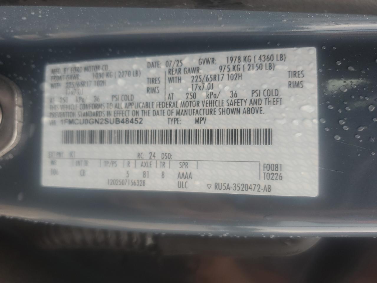 - ВИН: 1FMCU0GN2SU******