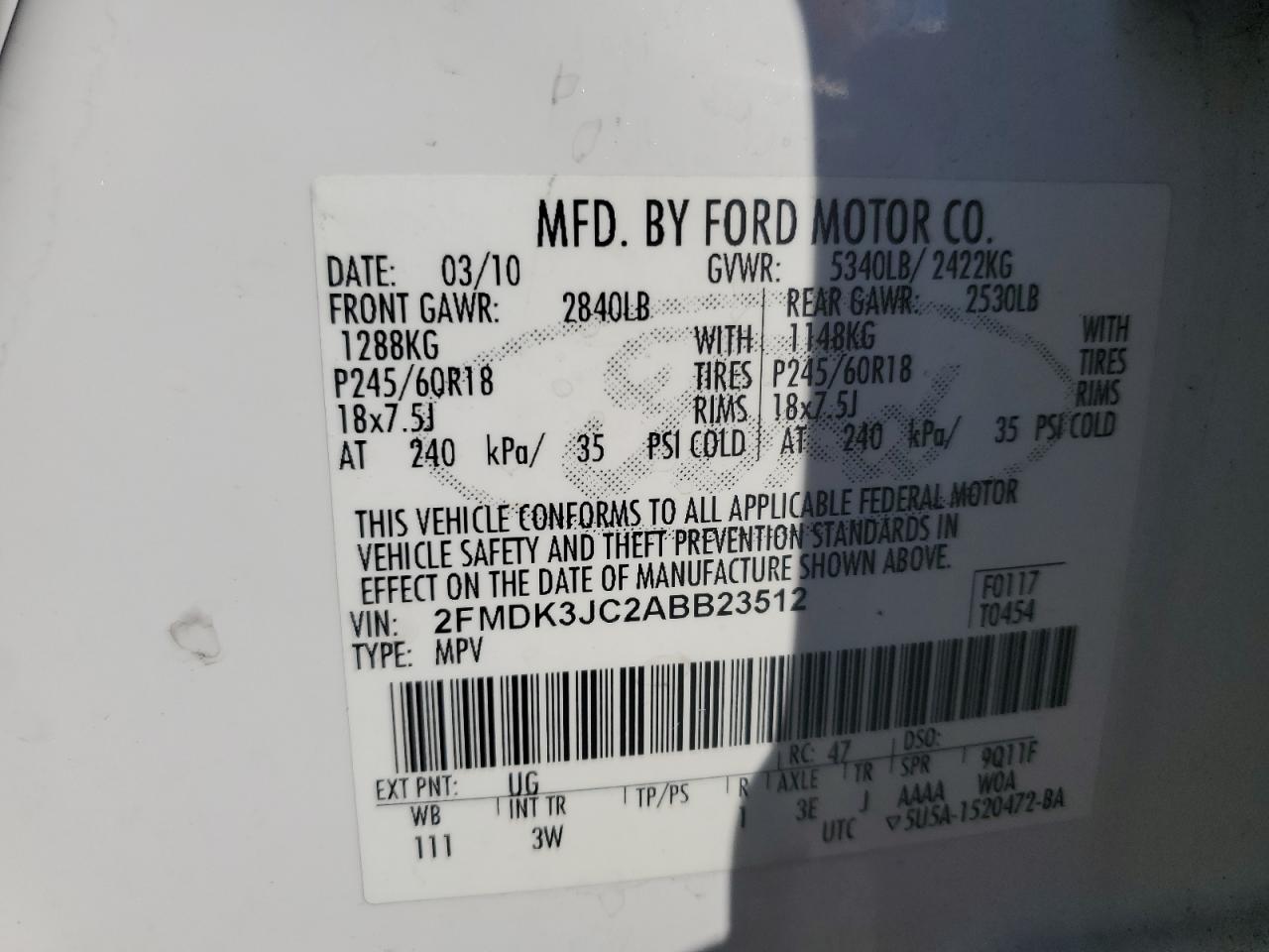 - ВИН: 2FMDK3JC2AB******