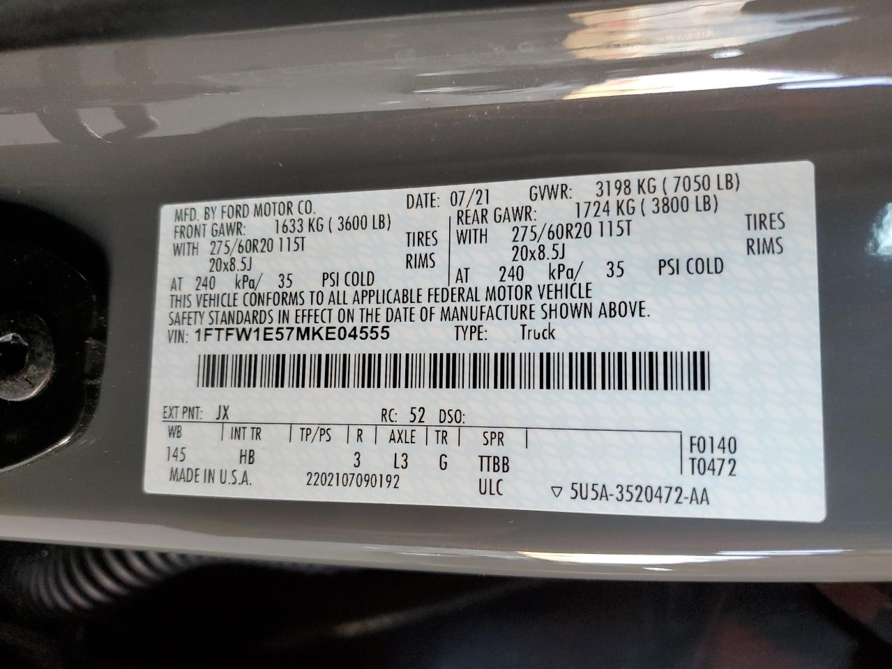 - ВИН: 1FTFW1E57MK******