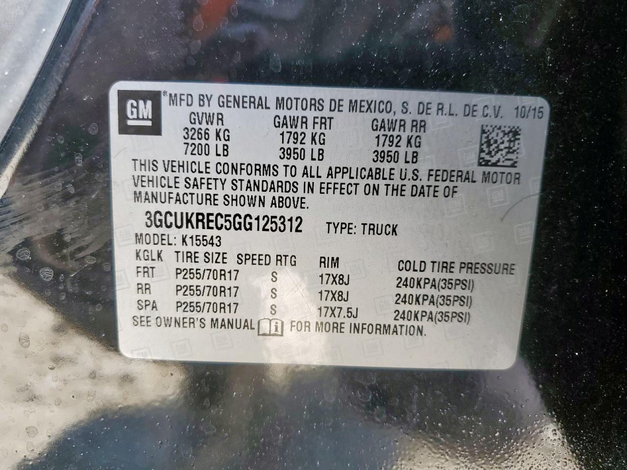 - ВИН: 3GCUKREC5GG******