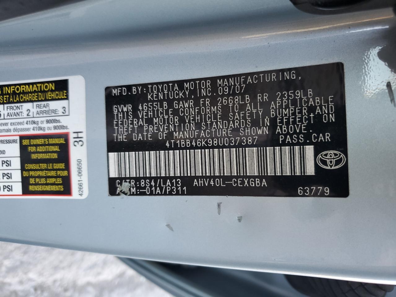 - ВИН: 4T1BB46K98U******