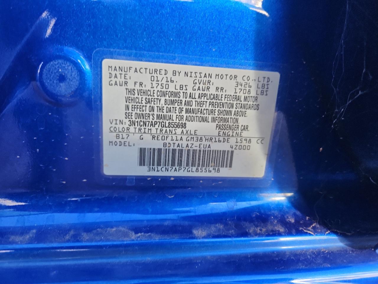- ВИН: 3N1CN7AP7GL******