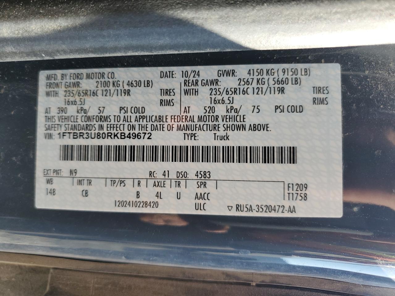 - ВИН: 1FTBR3U80RK******
