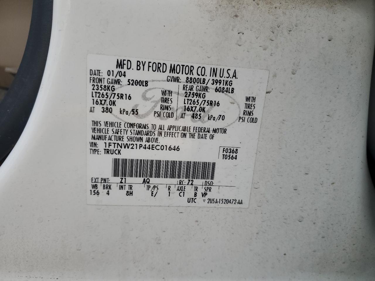 - ВИН: 1FTNW21P44E******