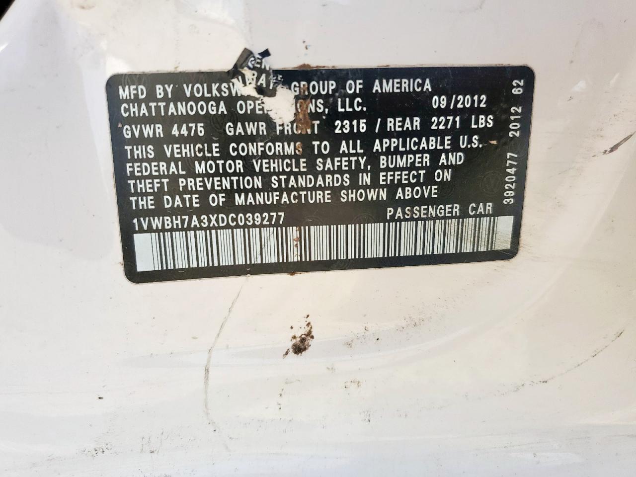 - ВИН: 1VWBH7A3XDC******