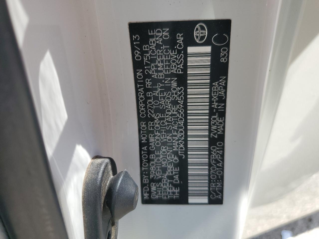 - ВИН: JTDKN3DU4D5******