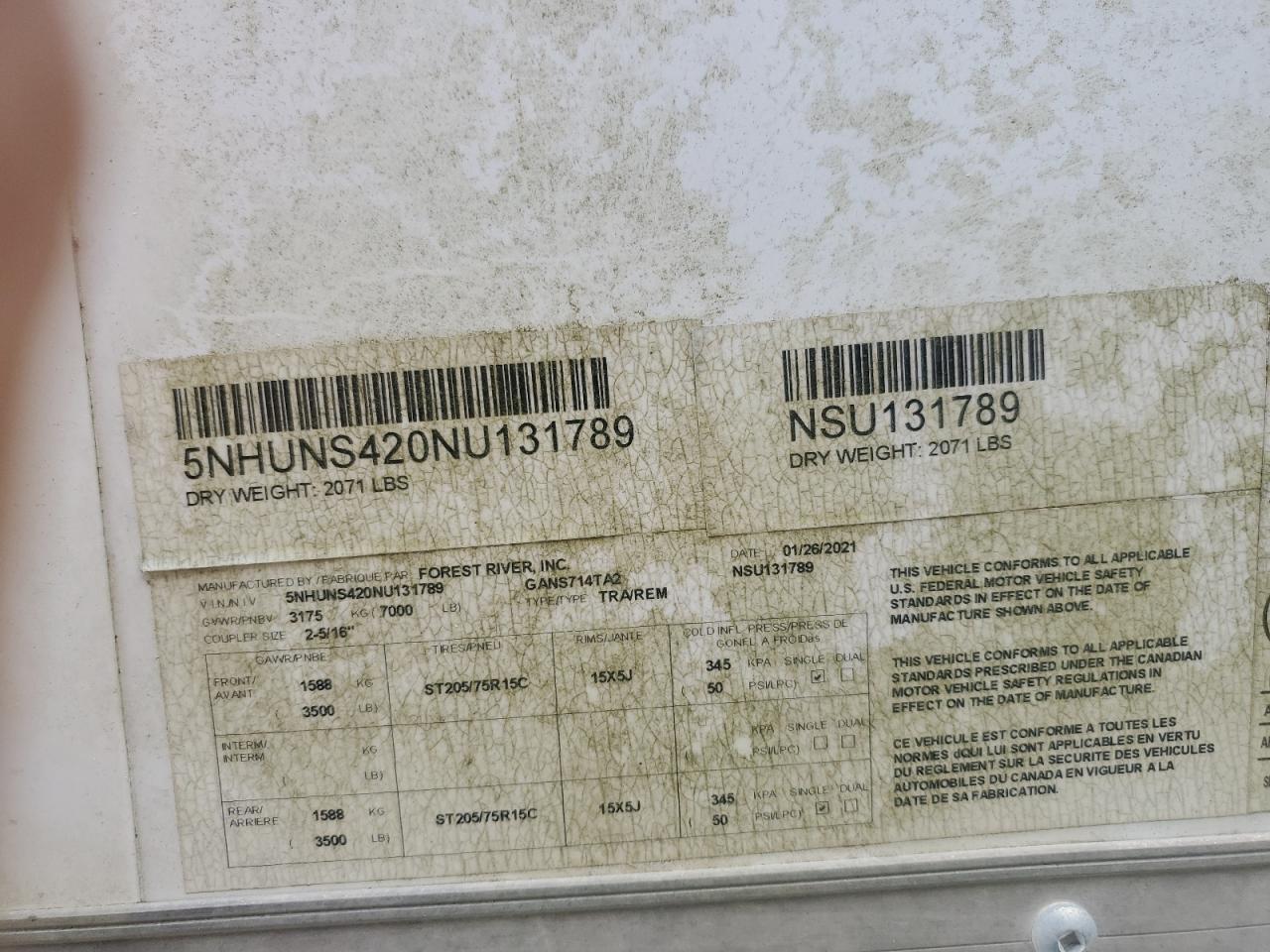 2021 FORESRIVER GANS714TA2 ENCLOSED CARGO TRAILER