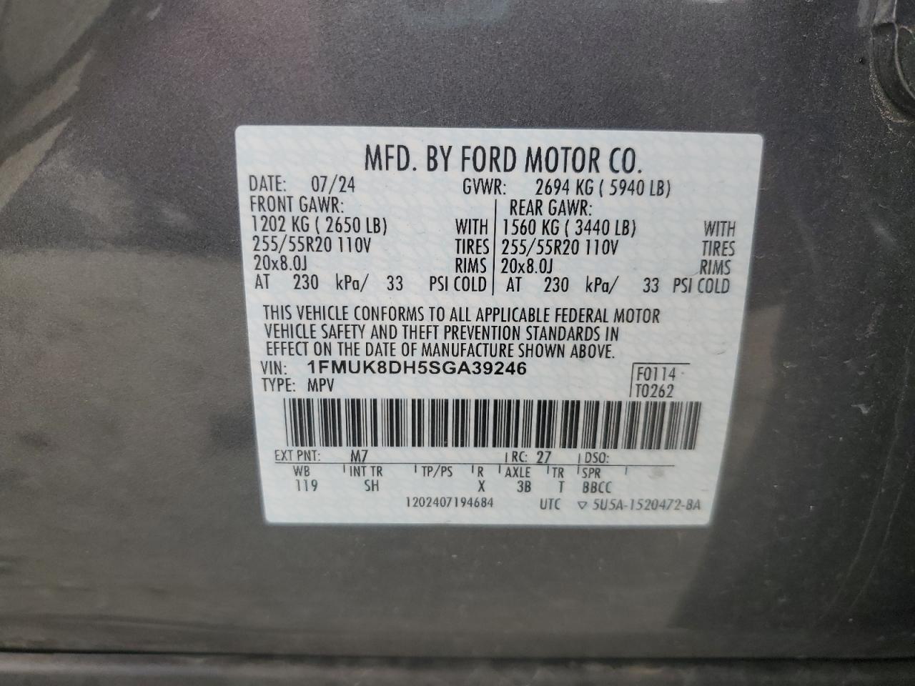 - ВИН: 1FMUK8DH5SG******