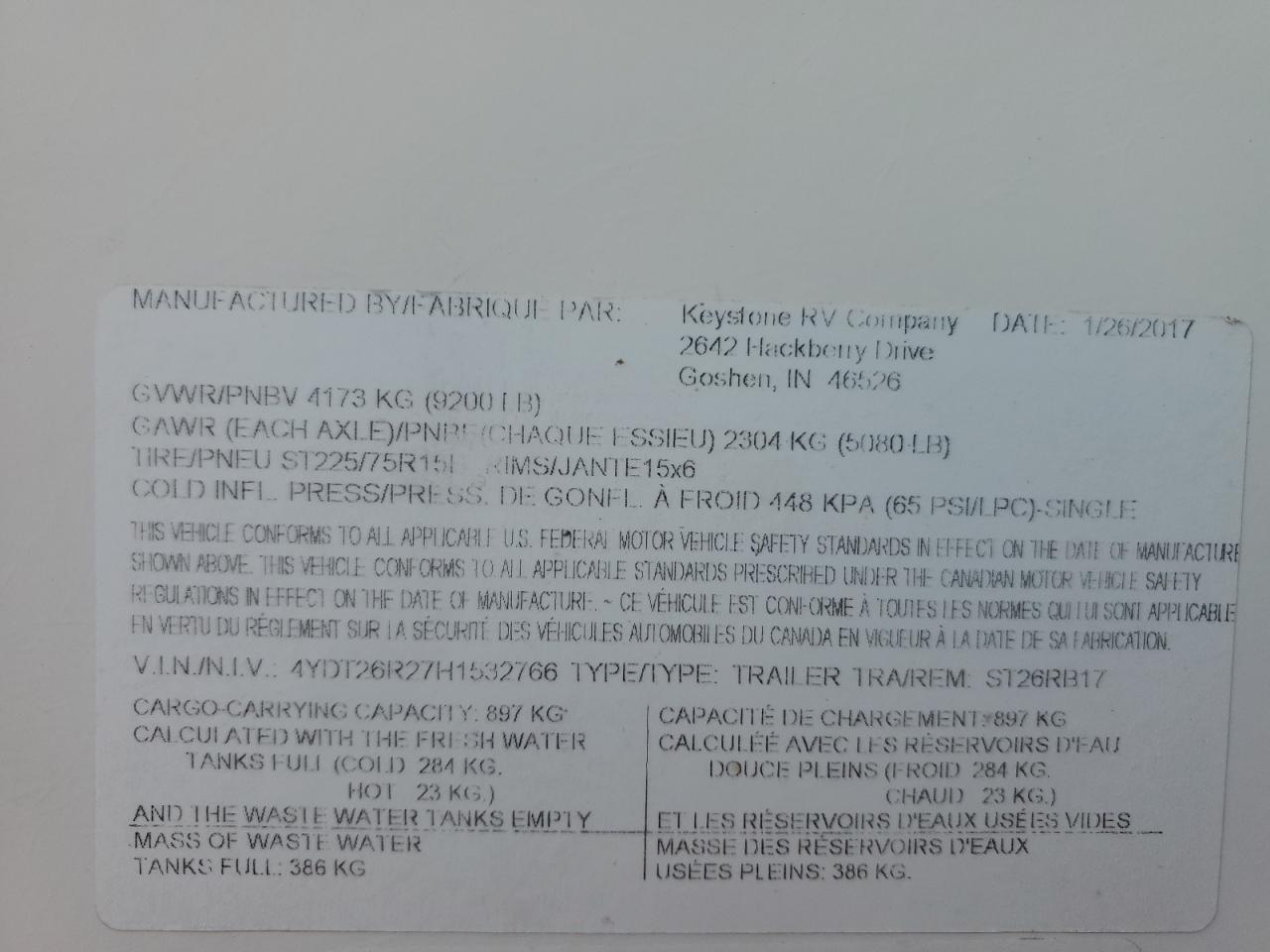 - ВИН: 4YDT26R27H1******