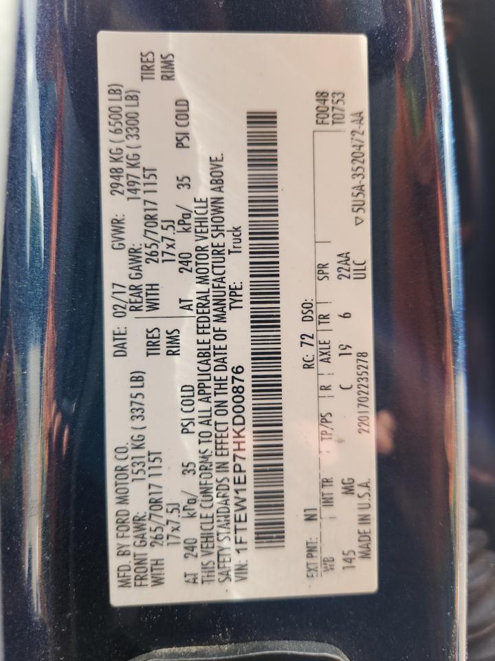- ВИН: 1FTEW1EP7HK******