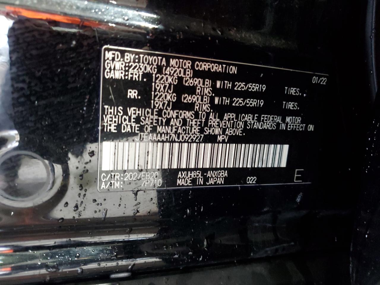 - ВИН: JTEAAAAH7NJ******