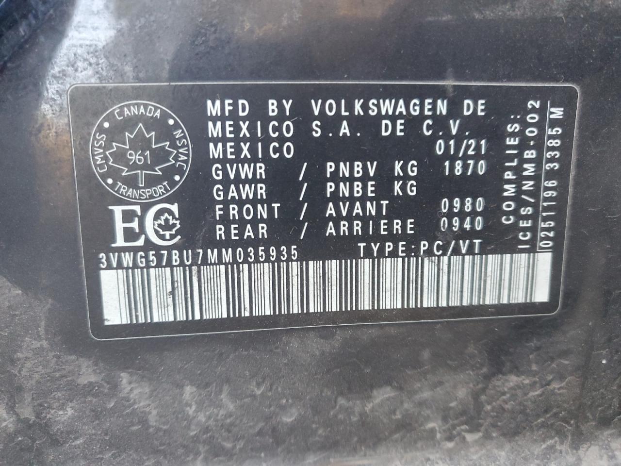 - ВИН: 3VWG57BU7MM******