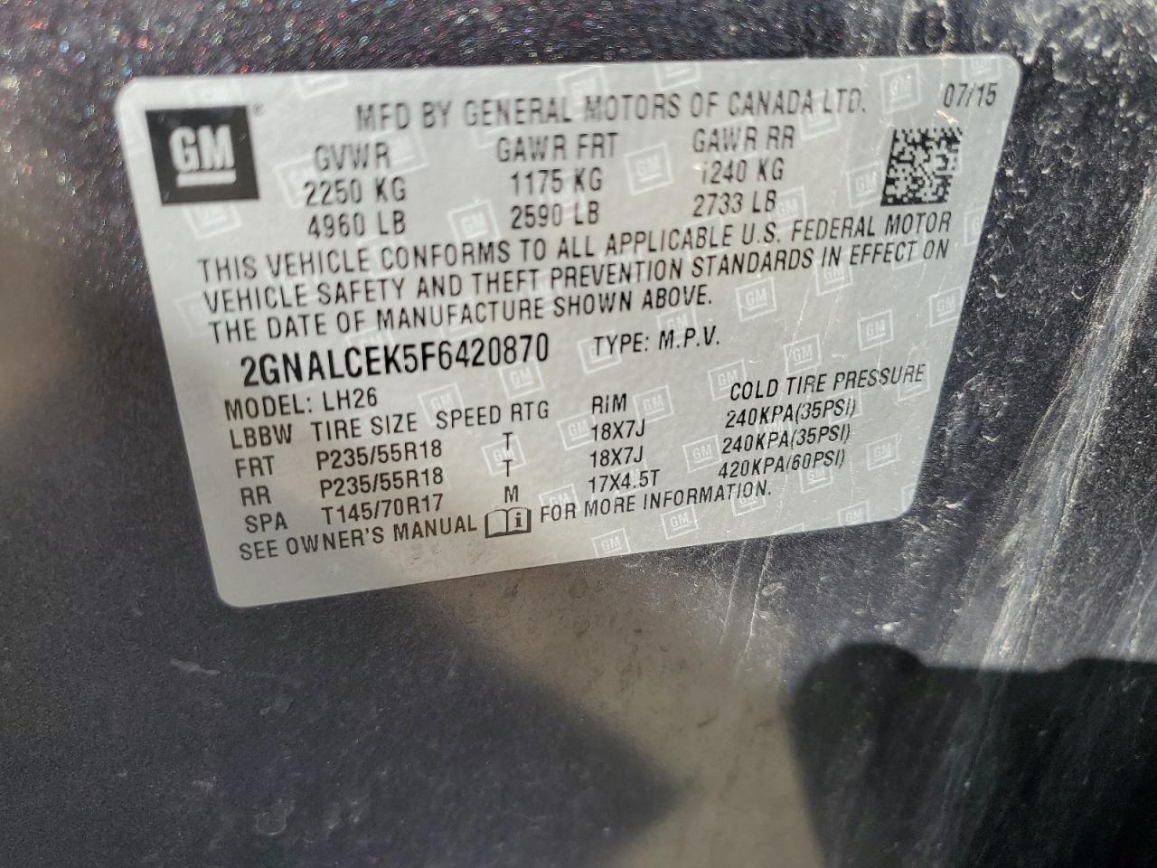 - ВИН: 2GNALCEK5F6******
