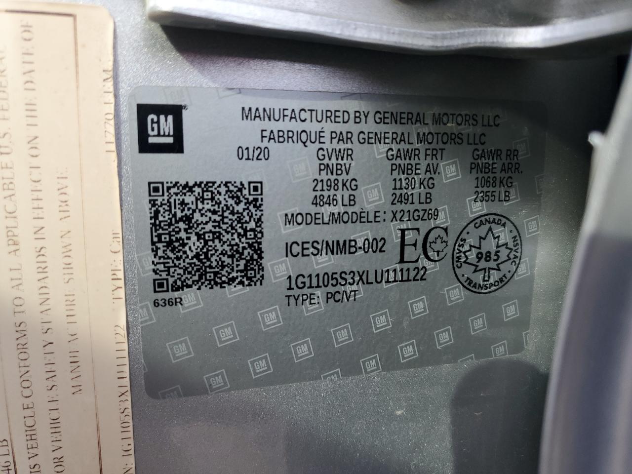 - ВИН: 1G1105S3XLU******