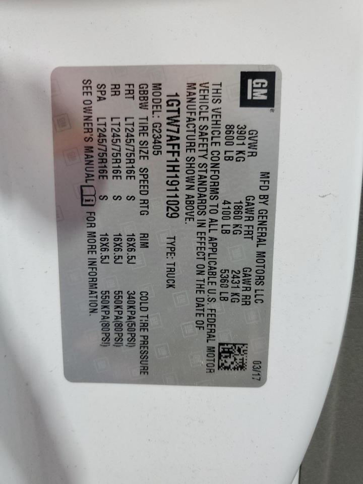 - ВИН: 1GTW7AFF1H1******