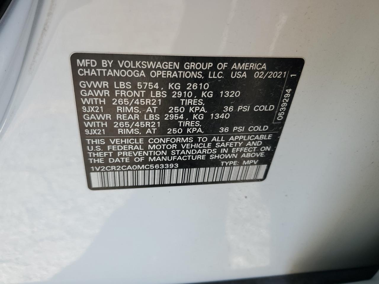 - ВИН: 1V2CR2CA0MC******