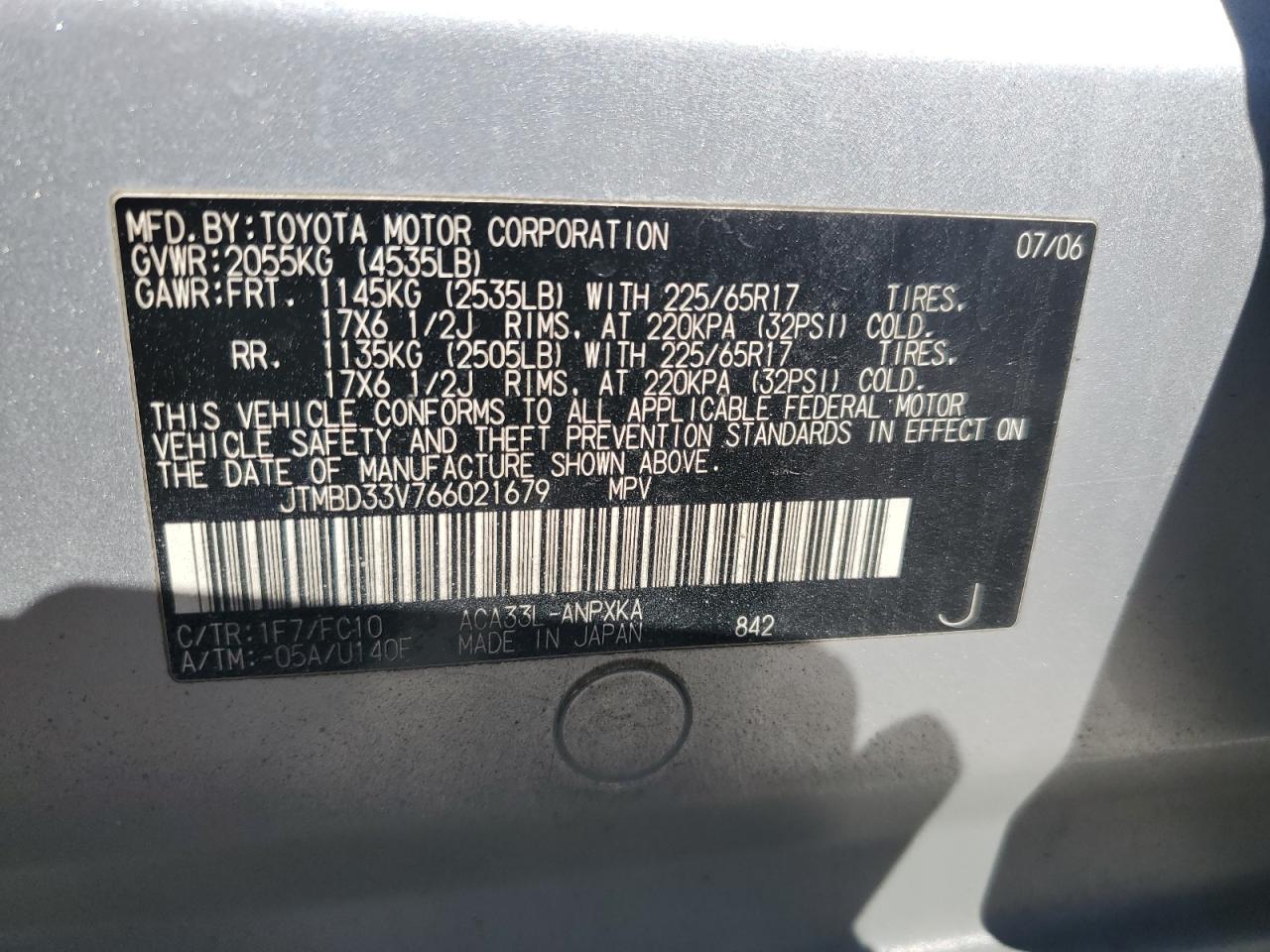 - ВИН: JTMBD33V766******