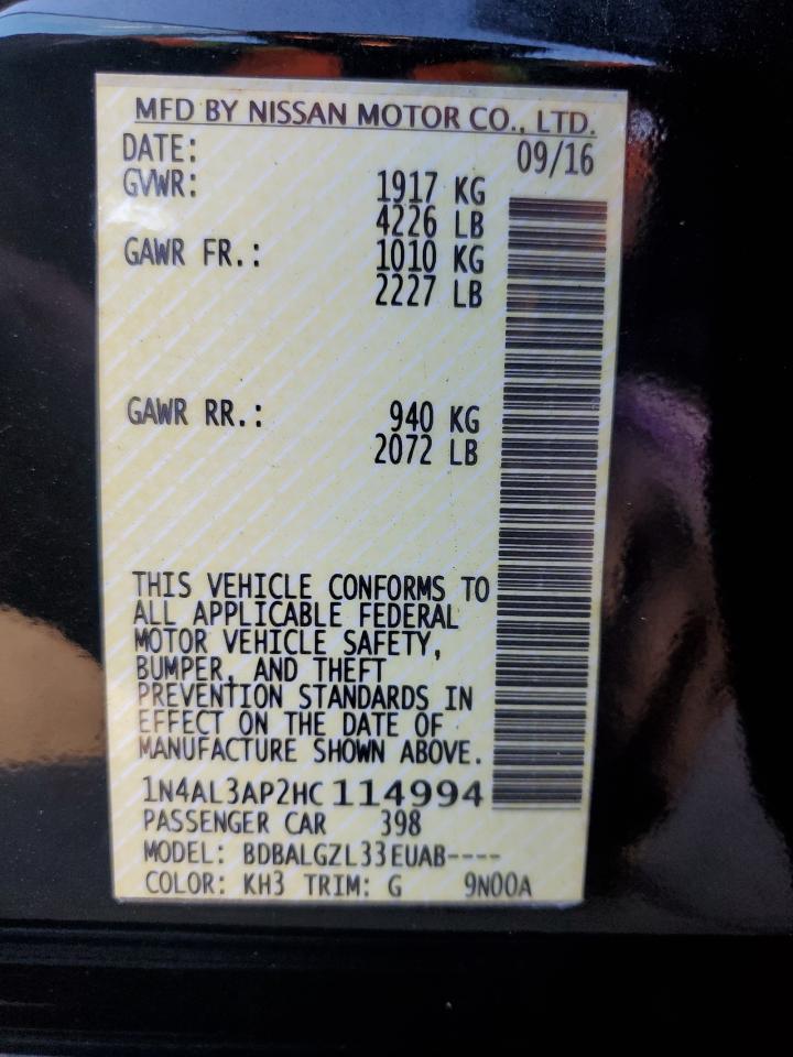 - ВИН: 1N4AL3AP2HC******