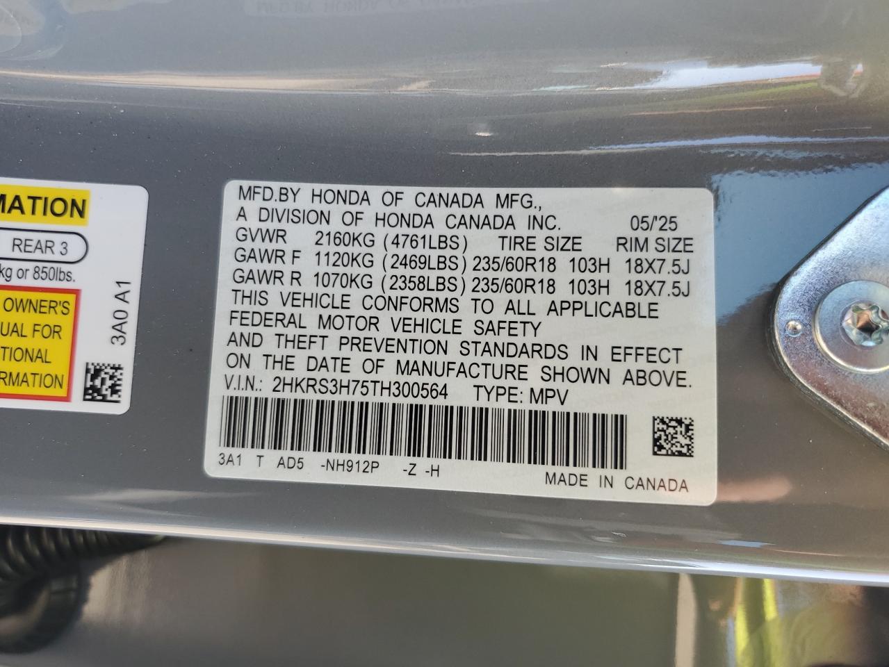 - ВИН: 2HKRS3H75TH******