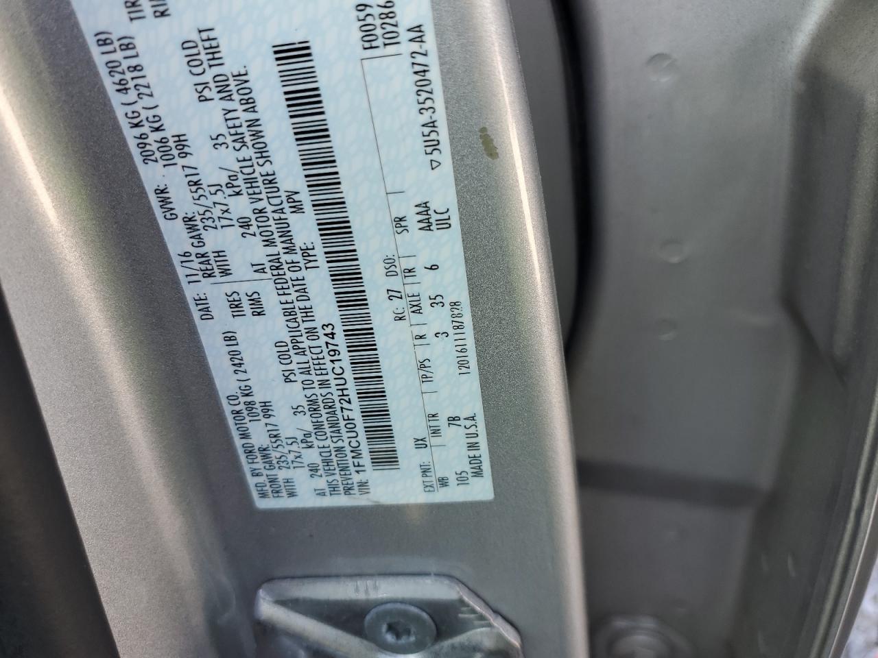 - ВИН: 1FMCU0F72HU******