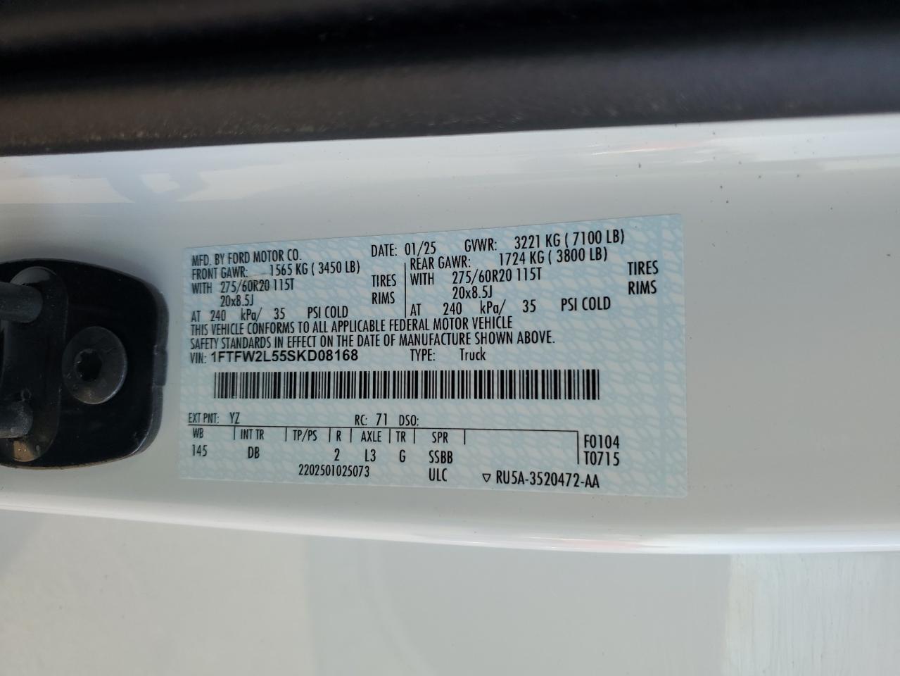 - ВИН: 1FTFW2L55SK******