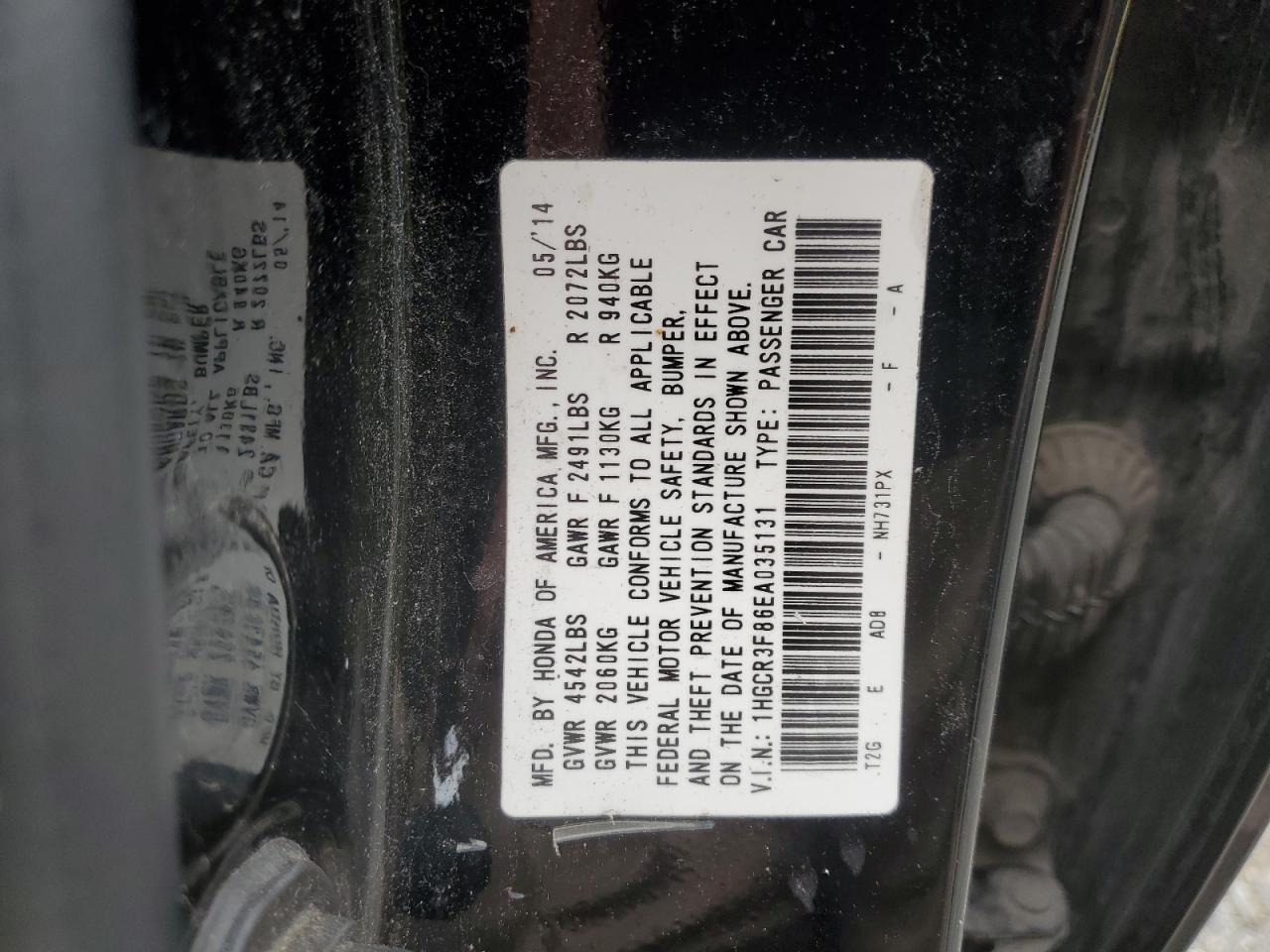 - ВИН: 1HGCR3F86EA******