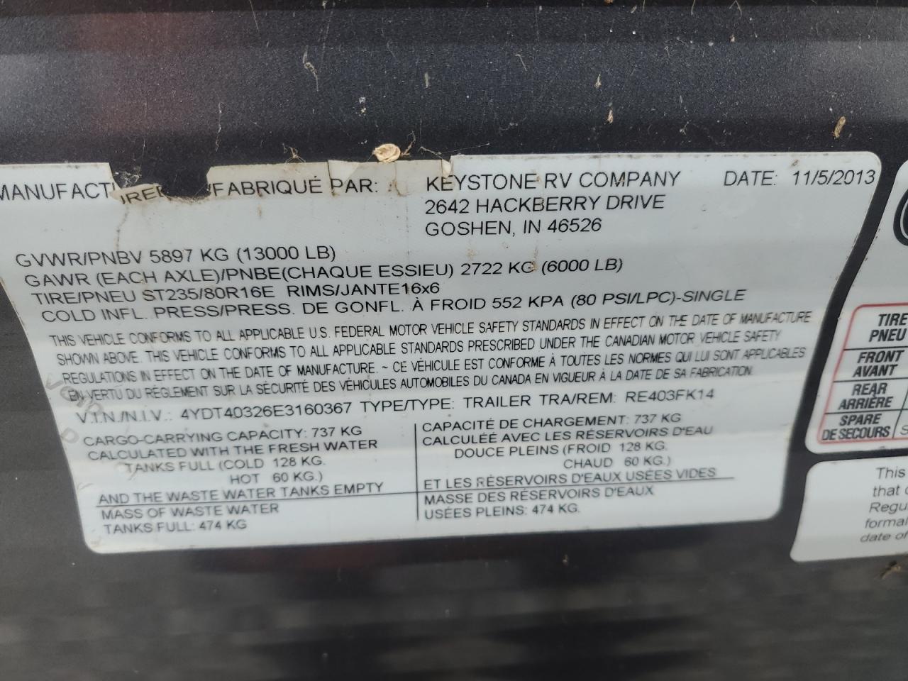 2014 KEYSTONE TRAILER из США