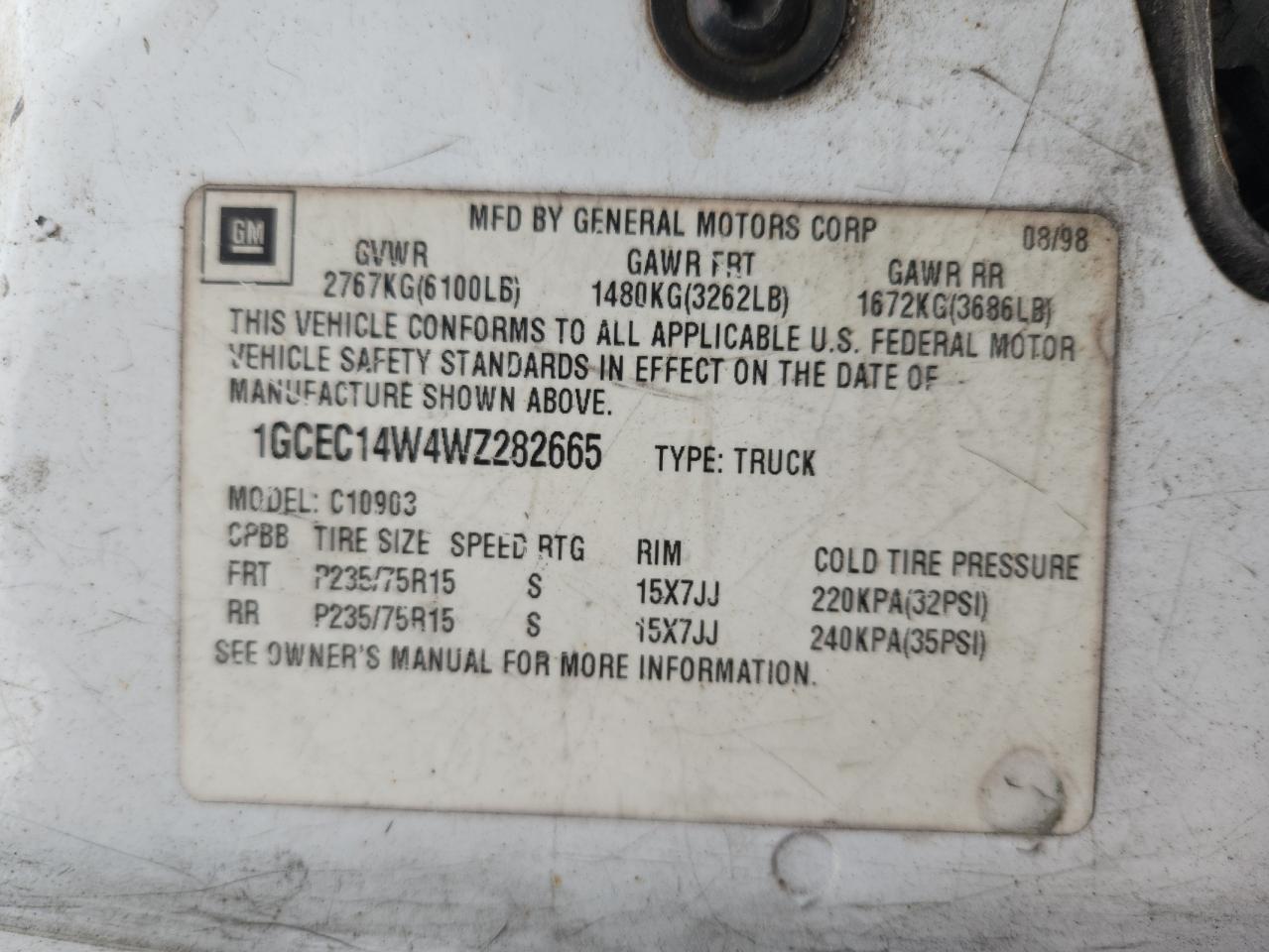- ВИН: 1GCEC14W4WZ******