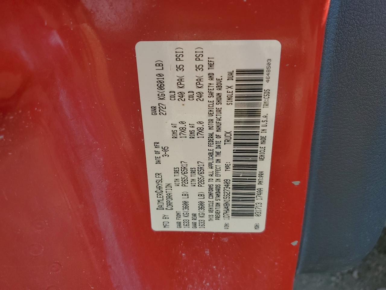 - ВИН: 1D7HW48N15S******