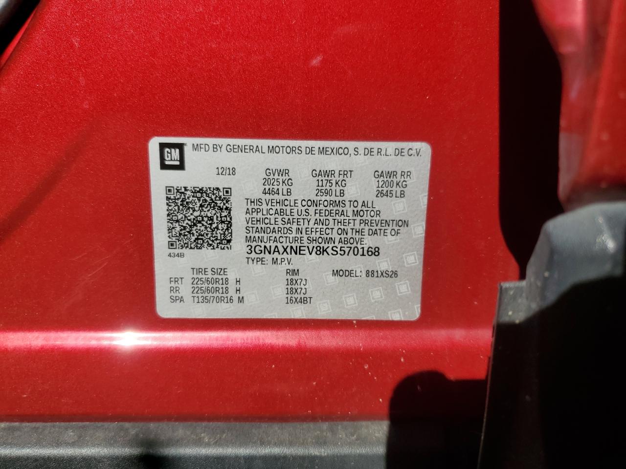 - ВИН: 3GNAXNEV8KS******