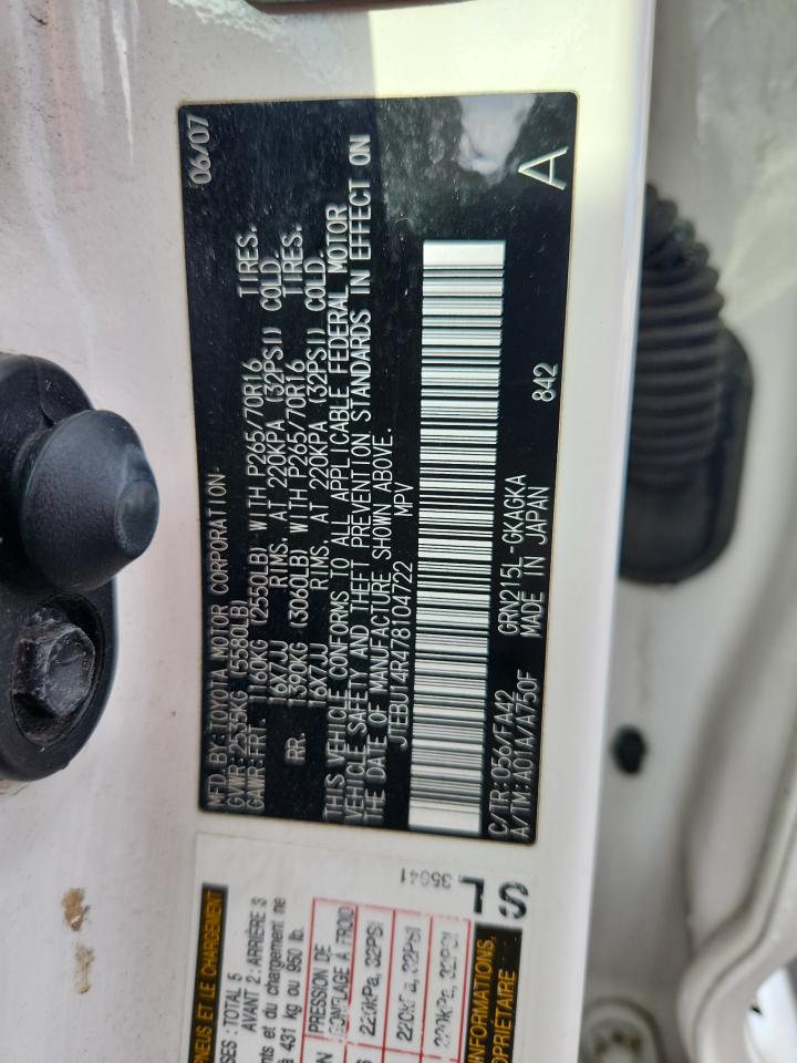 - ВИН: JTEBU14R478******
